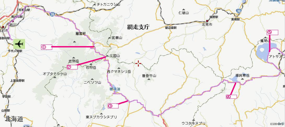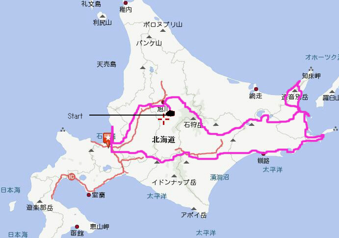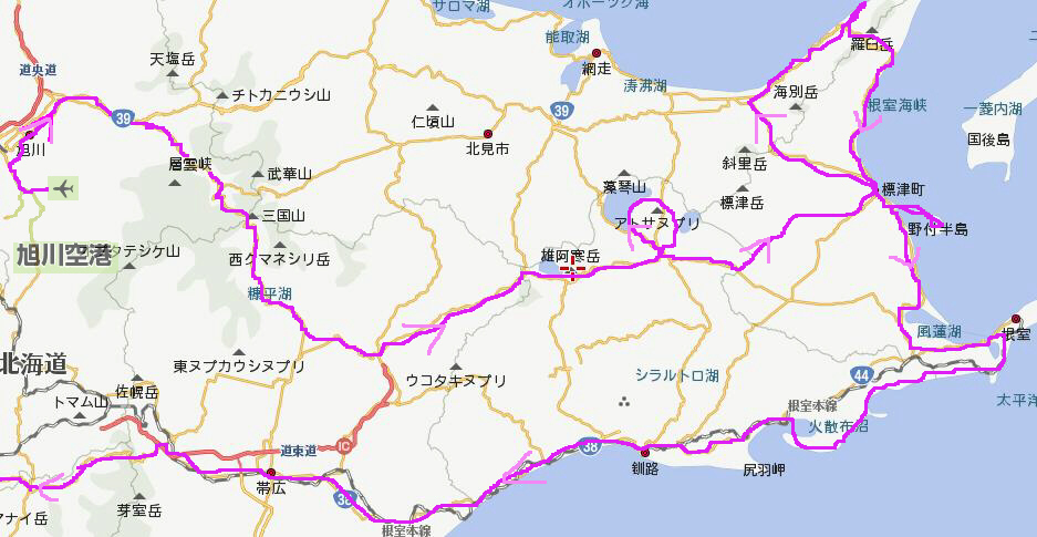 <今回の旭川~道東~札幌~旭川 1549.6kmプチめぐりルート by Swift>