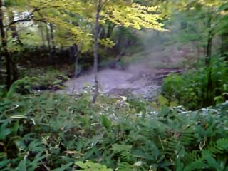 ↓至る所「ボッケ」だらけ・・・湯気が出ているのがわかるでしょうか。(立ち入り禁止箇所のため、遠くからの眺めとなります。)