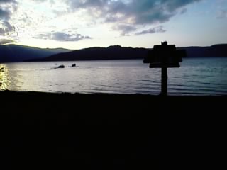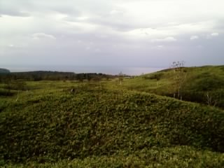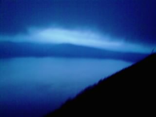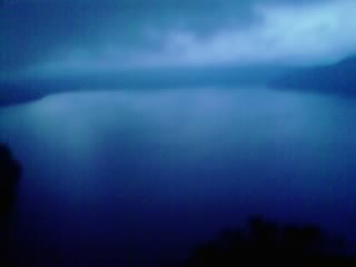まぁそれはそれとして、着いたのは16時頃でしたが陽は傾きはじめ、よく見えません。湖には「中島(火砕丘、面積5.7km²、周囲12km」が浮かびます。写真じゃよくわかりませんね・・・。