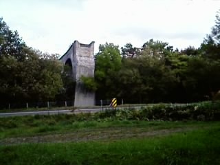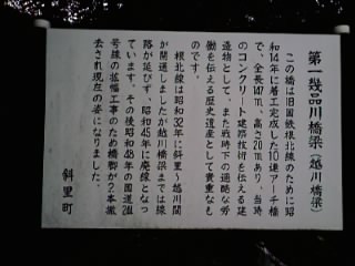 【Wikipediaより】1934年、越川駅~上越川駅間の国有鉄道根北線の橋梁として建設が開始される。周囲数km四方に民家すらない北海道の山間奥地に作られた全長147m、地上高20mの10連アーチ橋。建設は難航を極め、多くのタコ部屋労働者が使役され命を落とした。太平洋戦争が激化すると、物資欠乏のため根北線の建設は中断される。越川橋梁はほぼ完成した状況にあったが、戦後になっても根北線の越川より根室標津方が開通することないまま、1970年に根北線自体が廃止され、結果として一度も使用されることはなかった。