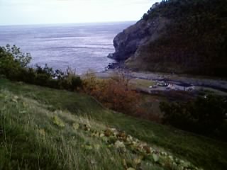 ウトロ付近の様子。左側にオホーツク海が見える。