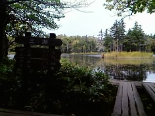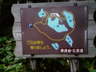 ちなみにオイラ、二湖までは途中団体旅行のツアーグループに紛れ込むように付いていきました(20名以上の団体旅行のグループ自体が多数おり、混雑していたのでついでに紛れ込んでガイドさんの説明を聞いてましたw)が、残念ながら団体旅行は三湖には行かず帰ってしまいました。しかたなく五湖まで自力で散策したのですが、三湖~五湖までの周遊には「鈴」の携帯が推奨されていることに気づいたのが、五湖までの散策が終わったあと・・・ガクブル。幸運にも熊は出ませんでしたが、目の前で「エゾシカ」の群れと遭遇し、目と目があってしまいました・・・