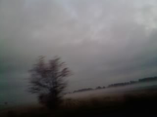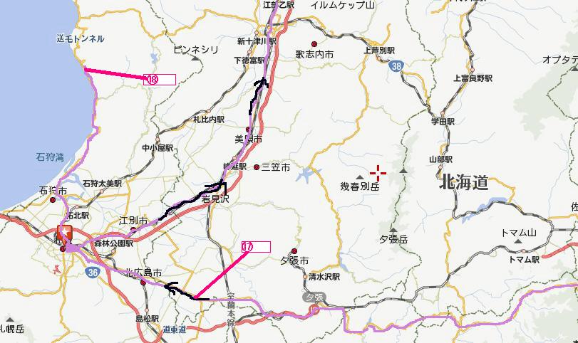 栗山町・由仁町は市町村合併で町名が変わったかもしれませんが、日勝峠を越え、夕張に入った頃から夜が開けてきました。畑の中がモヤってます。朝だなぁ・・・